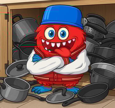 He lives in the back of your cabinets, loves clutter, and makes sure everything falls over, disappears, or becomes impossible to reach.