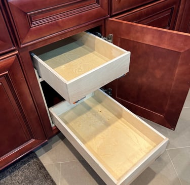 With smooth, soft-close pull-out drawers, everything becomes organized, accessible, and beautiful.