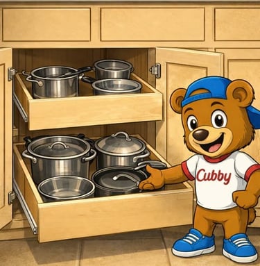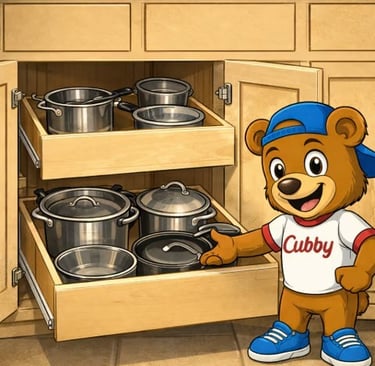 Cubby is the friendly hero who brings order, space, and sanity back to your kitchen with professionally installed pull-out drawers.